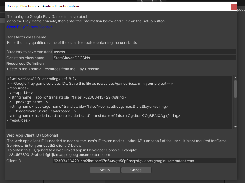 Go to window → Google Play Games → Setup → Android and paste the XML. Click setup and it’s ready to go.