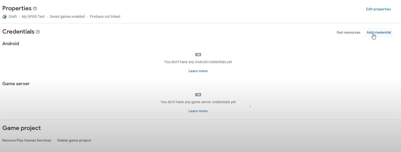 Go to Play Game Services → Setup and Management → Configuration → Add credentials → Selected the previously created OAuth credential.